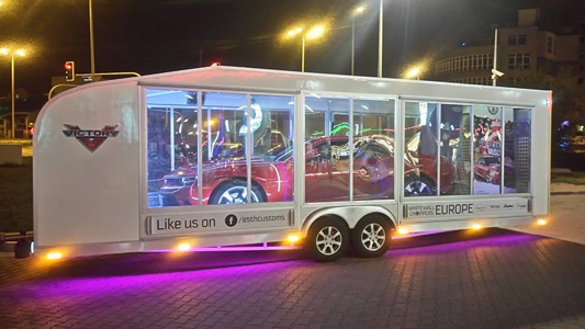 Zmień monotonie na targach, zaprezentuj swoją firmę i produkty w nietypowy sposób. Rozbudowany system brandingowy, nagłośnienie audio oraz LED zamieniają przyczepę w idealne mobilne stoisko na każdy rodzaj eventu bezwzględu czy jest w hali lub na świeżym powietrzu.