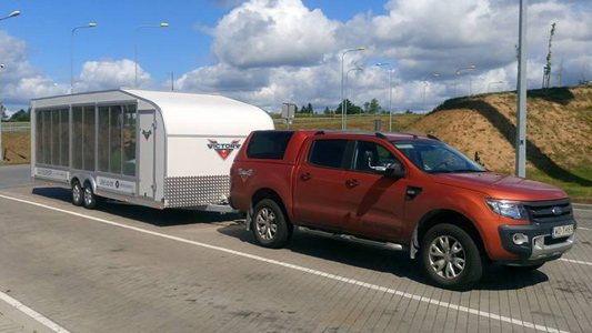 Wynajem zestawu - samochód + przyczepa do celów promocyjnych lub eventowych. Transport samochodów sportowych lub nietypowych nie jest już problem, wsparcie ekip sportowych samochodowych, motocyklowych na torach rajdowych. Prezentacja nowych modeli samochodów, motocykli, quadów - doskonały efekt podświetlania prezentuje się podczas nocnych przejazdów. Idealne rozwiązanie na eventy, targi czy różnego typu prezentacje.