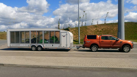 Wynajem zestawu - samochód + przyczepa do celów promocyjnych lub eventowych. Transport samochodów sportowych lub nietypowych nie jest już problem, wsparcie ekip sportowych samochodowych, motocyklowych na torach rajdowych. Prezentacja nowych modeli samochodów, motocykli, quadów - doskonały efekt podświetlania prezentuje się podczas nocnych przejazdów. Idealne rozwiązanie na eventy, targi czy różnego typu prezentacje.